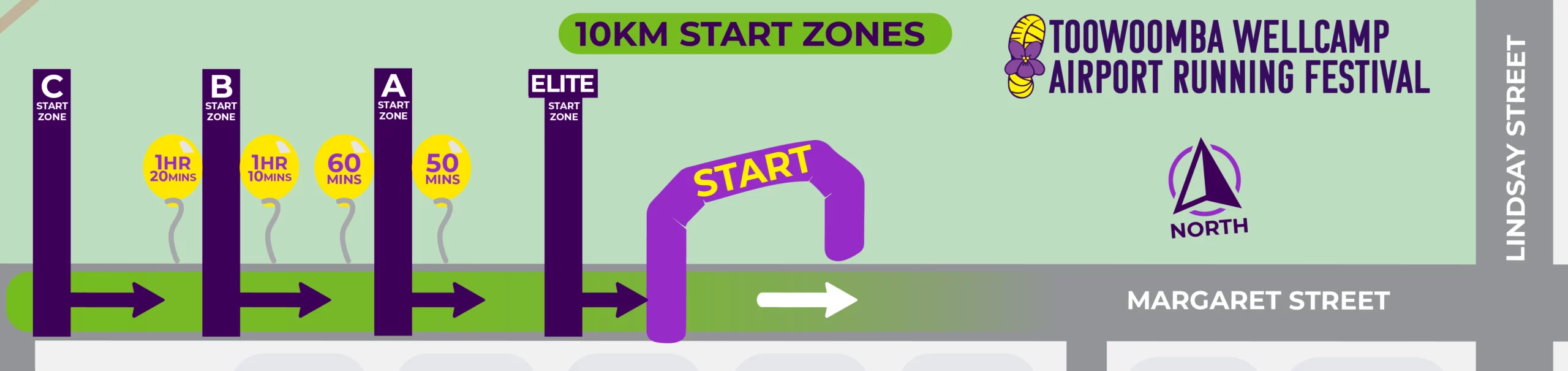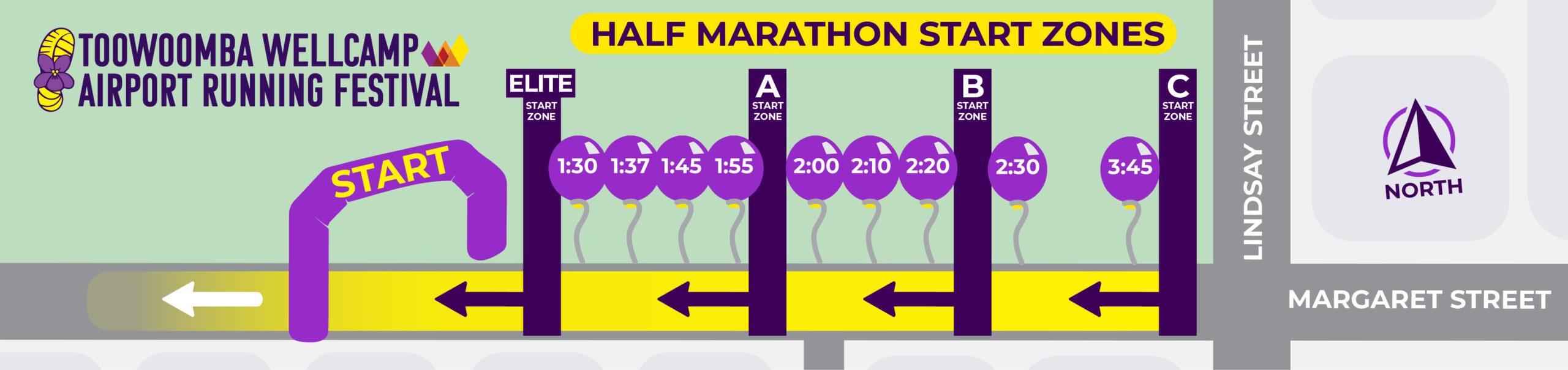 For easy visibility, the pacers will be carrying a coloured balloon and a goal time sign high amongst the starting runners. Each pace runner will also wear a singlet with the goal time marked on the back. It’s important to know the start zone your pace runner will be in and ensure you choose the same start zone when you enter so you can start the race near your pacers.
